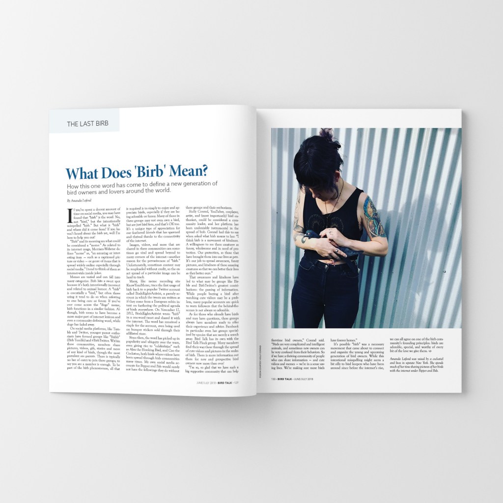 Bird Talk was reinventing itself, after closing its doors several years ago. A more sophisticated look was requested. My final design showcased bold imagery and clean layouts.